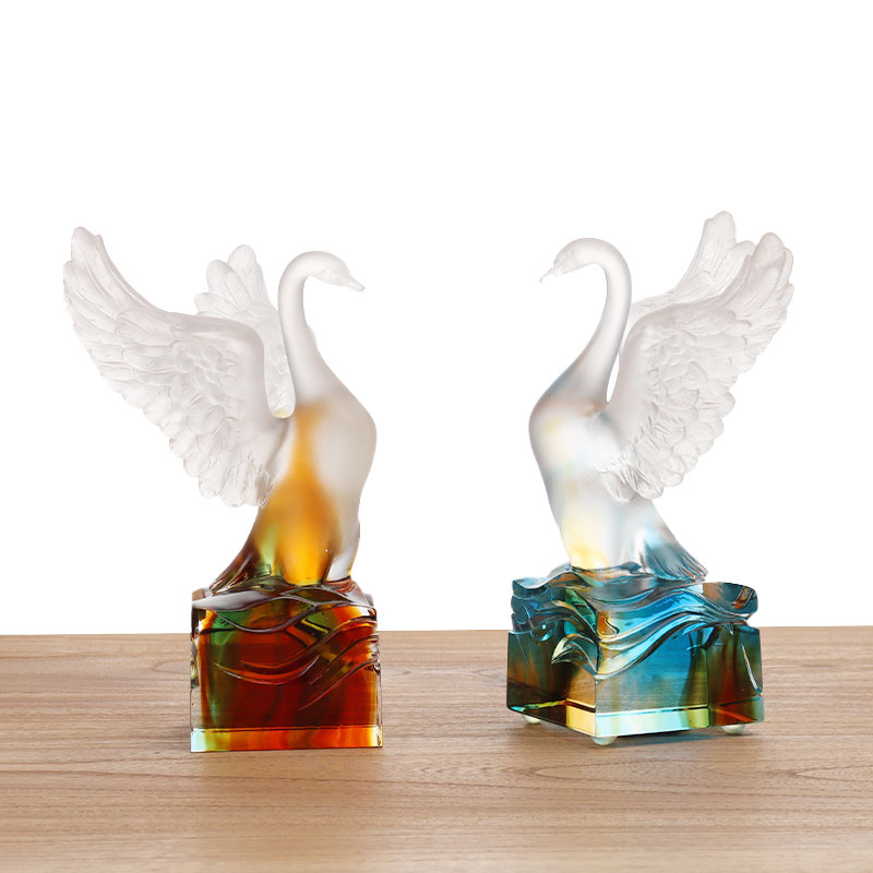 Sve u svemu, ovaj stakleni labud nije samo vizualni užitak, već i poželjna kombinacija zanatskog umijeća i umjetnosti. Simbolizira eleganciju i plemenitost. Bilo da se stavlja kod kuće kao ukras ili se poklanja drugima, može prenijeti jedinstveni umjetnički šarm i ukus.