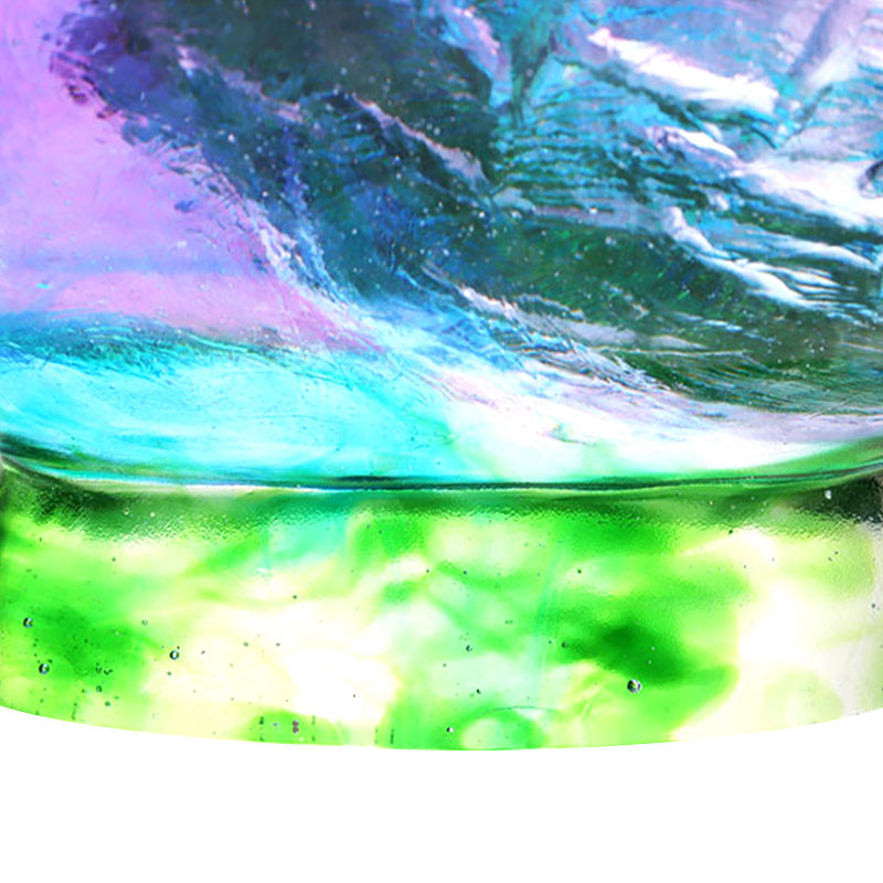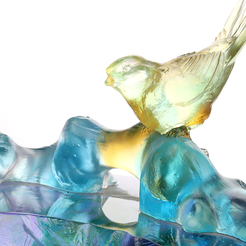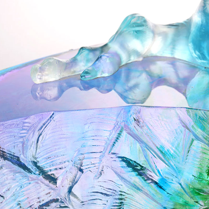 Zapravo, sasvim je normalno da staklena umjetnička djela sadrže mjehuriće. To je zbog naše upotrebe tehnike lijevanja izgubljenim voskom, što prirodno rezultira prisutnošću mjehurića unutar komada. Način na koji se svjetlost lomi kroz te unutarnje mjehuriće pokazuje jedinstveni šarm staklenog materijala. To lijepo ilustrira da staklo doista služi kao posuda za svjetlost.
