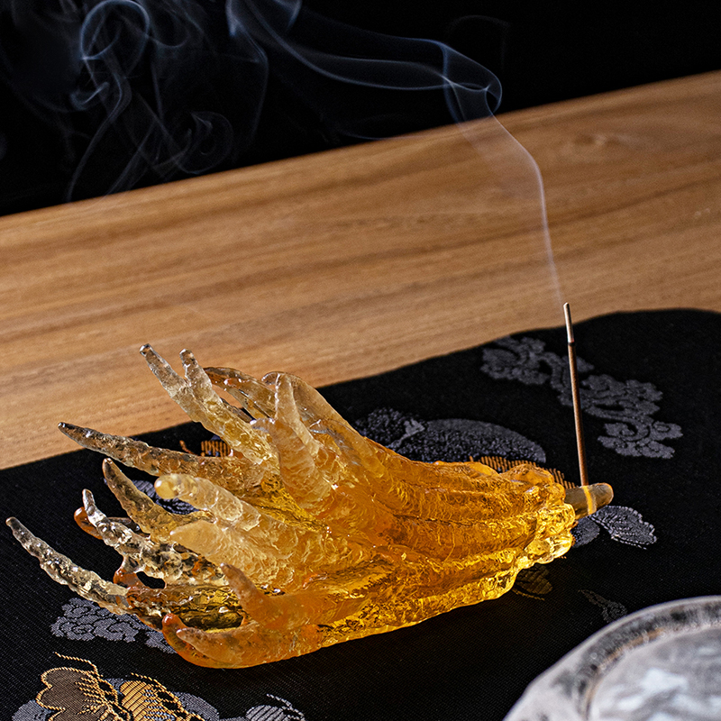 Ovaj držač tamjana koristi zlatnu nijansu, sjajnu poput sunca, dajući ljudima luksuzan i elegantan osjećaj. Sa stajališta oblika, ovaj staklo za tamjan u boji ima oblik ruke, s prirodno ispruženim prstima, a svaki detalj je do detalja prikazan, pokazujući vrhunsko umijeće majstora. Tekstura i zglobovi prstiju su realistični, kao da ovoj ruci daju vitalnost. Praktičnost i umjetnost držača tamjana su poželjno spojene. Kada se tamjan zapali, dim se polako diže iz prstiju, stvarajući tihu i tajanstvenu atmosferu. Bilo da se koristi kao držač tamjana ili se postavlja u zatvorenom prostoru kao ukras, može dodati jedinstvenu umjetničku atmosferu u okoliš.