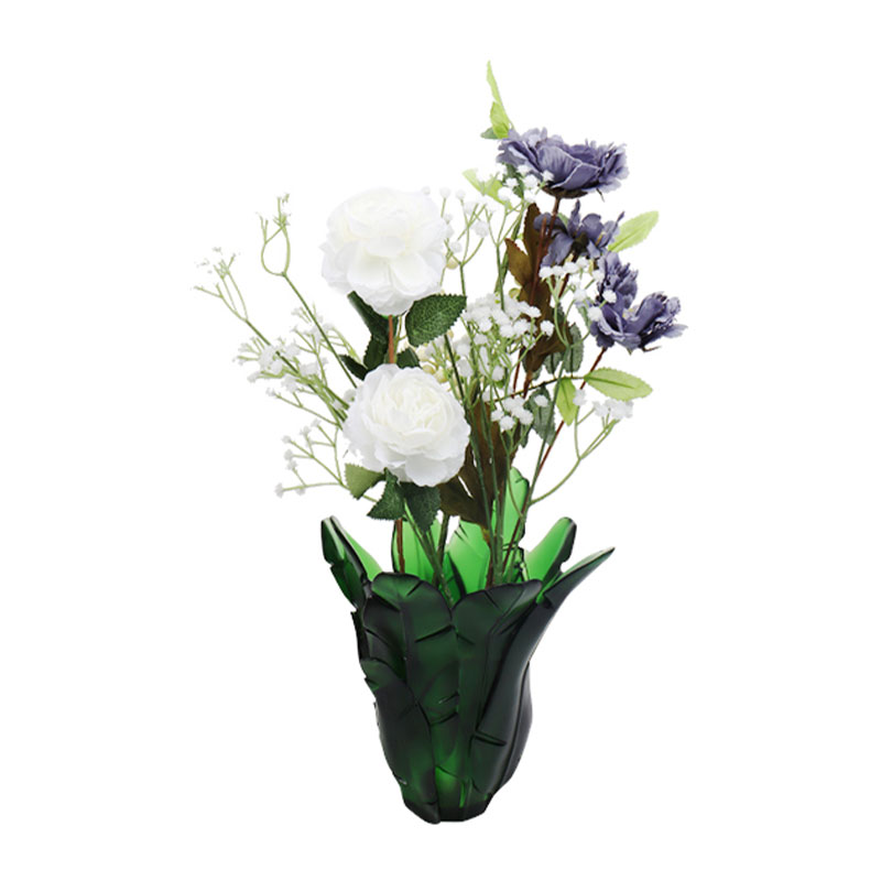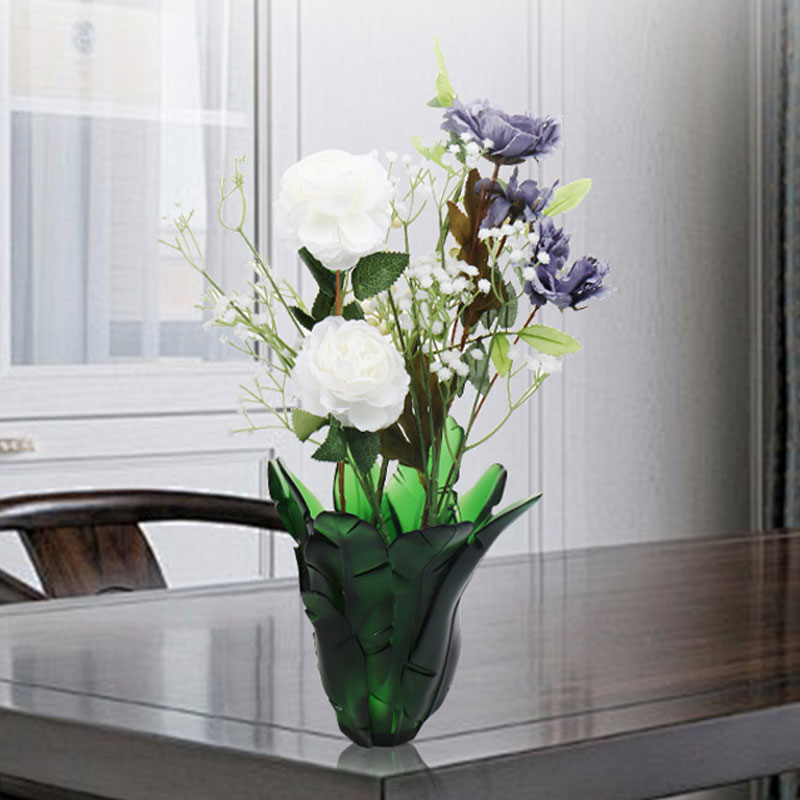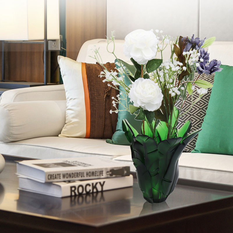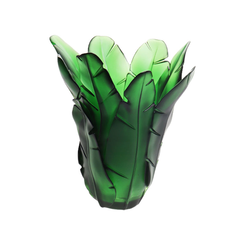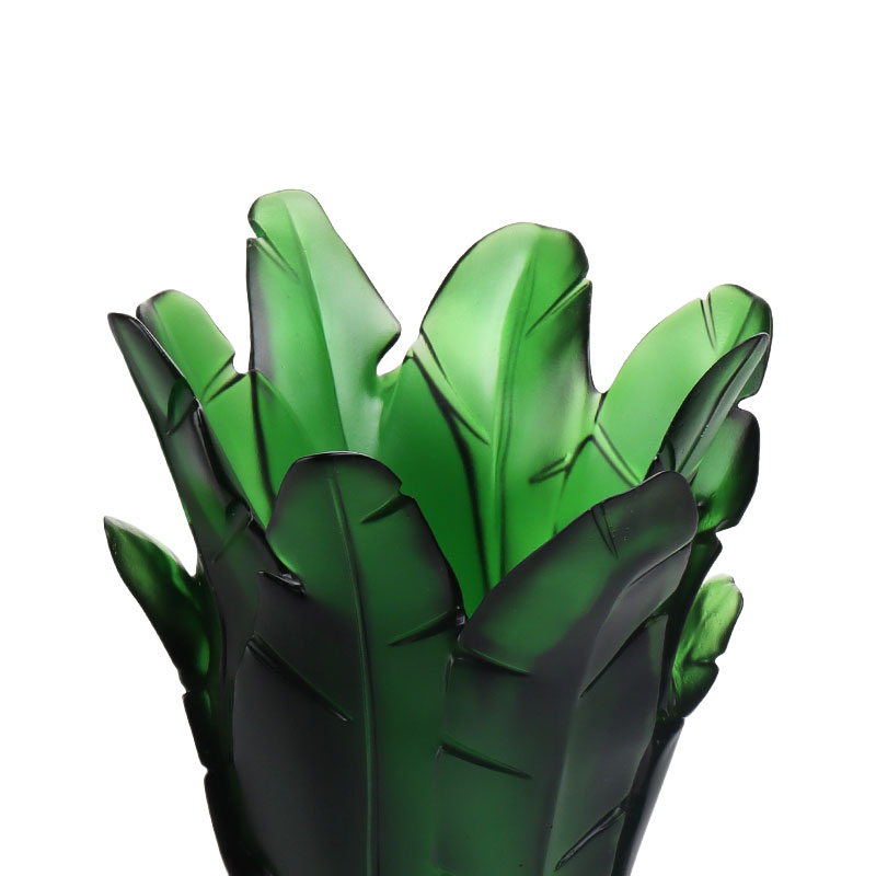 Dom / Proizvodi / Posuđe od kristalnog stakla / Vaza od kristalnog stakla / Dekoracija doma Staklena vaza sa zelenim listovima banane