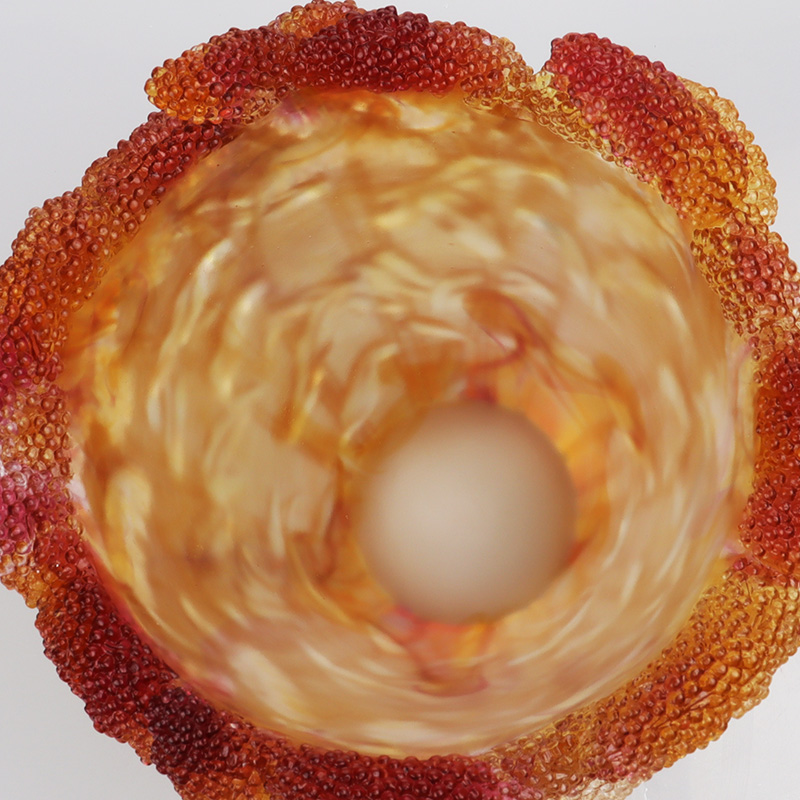 Tijekom lijevanja po izgubljenom vosku, pigmenti se stapaju i prožimaju na visokim temperaturama, oslobađajući gradijente od mehaničkog razdvajanja. Aureole boje jantara gdje se susreću zlatna i crvena slučajni su sudari između bakrenih elemenata i staklene matrice unutar peći od tisuću stupnjeva—savršeno oponašajući neravnomjerno izlaganje suncu koje usjevima daje njihovu autentičnu teksturu. Ovaj "kontrolirani kaos" ulijeva u umjetnu izradu prirodnu vitalnost—slično poput sirka koji podnosi vjetar i kišu, grije se na suncu i naposljetku razvija svoje živopisne nijanse na otvorenim poljima.
