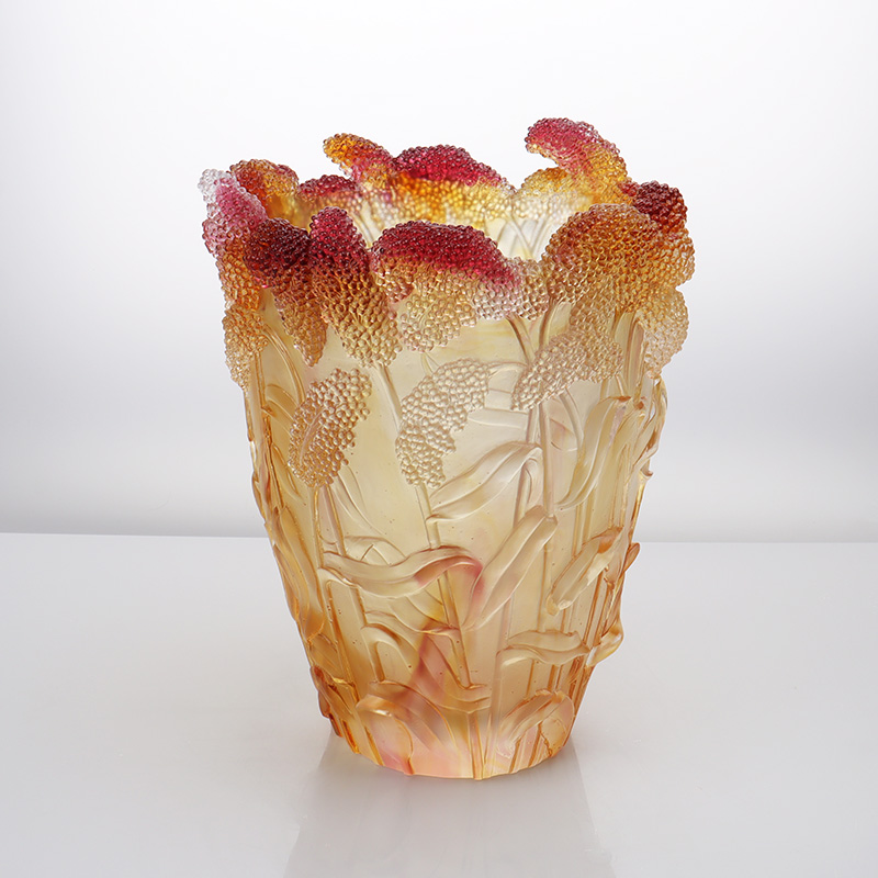 Žetva je u konačnici "suvremeni izraz tradicije": duhovna bit sirka revitalizirana je kroz prozirnost stakla, dok gradijentne nijanse koriste vrijeme kao kist za slikanje poezije poljoprivrede. Lijevanje izgubljenim voskom oživljava drevne tehnike koje su uspavane u modernom dobu. Kad svjetlost prođe kroz posudu, lelujave sjene klasja otkrivaju ne samo kristalnu čistoću stakla i suptilnost izrade, već i taloženje i ponovno rođenje zemaljske memorije unutar ere – podsjetnik da žetva ne označava samo materijalno obilje, već međugeneracijski prijenos kulturnih gena i kreativnu vitalnost tradicionalnog obrta koji izbija u suvremeni kontekst.